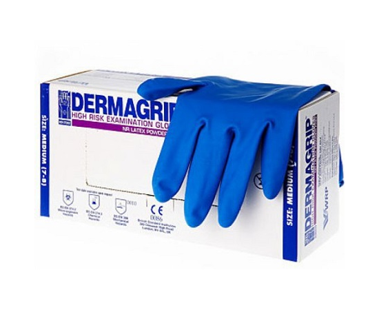 Перчатки DERMAGRIP High Risk синие S нестерильные латексные 25пар/пач
